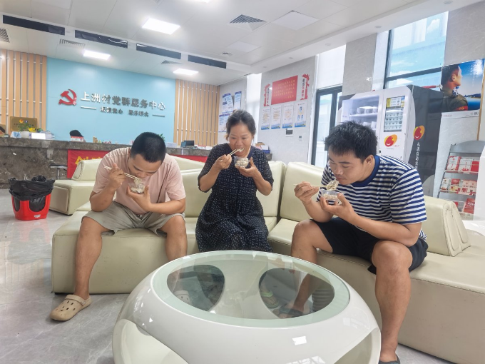 來自浙江的劉君會(huì),一家四口在上洲村承包了27畝魚塘,于9月23日下午轉(zhuǎn)移至此?!耙凰丫陀袩狎v騰的早飯,心里很暖!”她說道。