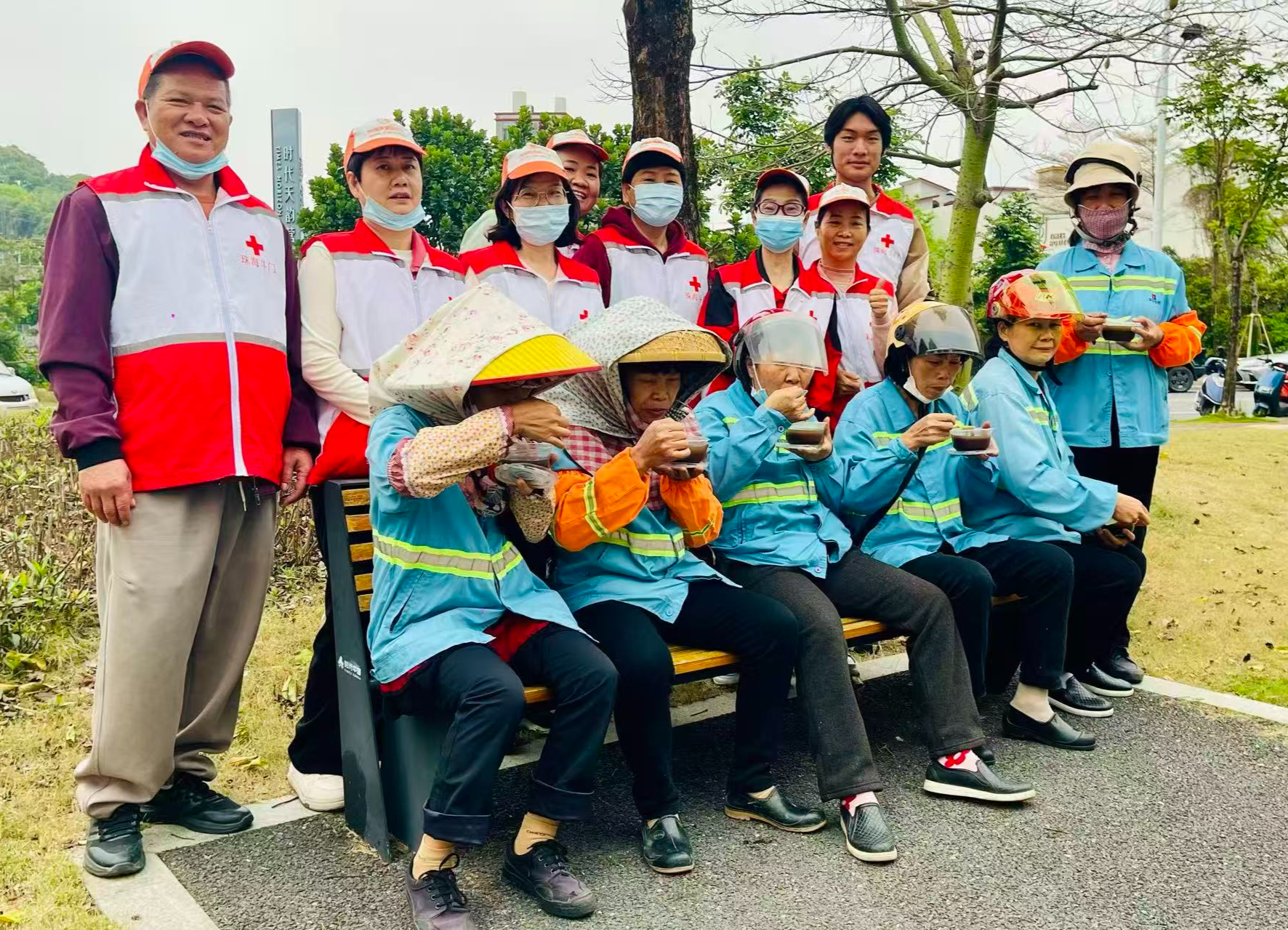 3月10日(星期二)清晨,志愿服務隊準時集結(jié)出發(fā),按照提前規(guī)劃的派送路線,分區(qū)域、分點位開展精準派送。活動全程統(tǒng)籌有序、分工明確:第一組依次前往坭灣南朝村城宏環(huán)衛(wèi)、白蕉華發(fā)市政環(huán)衛(wèi)、白蕉市政寧海環(huán)衛(wèi)、井岸紅衛(wèi)環(huán)衛(wèi)等作業(yè)點位,同時兼顧沿路作業(yè)的公路養(yǎng)護、電力維修等戶外工作人員,同步開展慰問派送;第二組深入新青環(huán)衛(wèi)、濕地公園環(huán)衛(wèi)、市民公園環(huán)衛(wèi)、白藤湖環(huán)衛(wèi)、白藤頭環(huán)衛(wèi)等重點區(qū)域,實現(xiàn)轄區(qū)核心環(huán)衛(wèi)作業(yè)點位全覆蓋。本次活動共熬制暖心糖水899份,志愿者將一份份熱氣騰騰、清甜溫潤的糖水送到一線作業(yè)人員手中,把黨和政府的關懷、紅十字會的溫暖真切送到基層勞動者的心坎上。