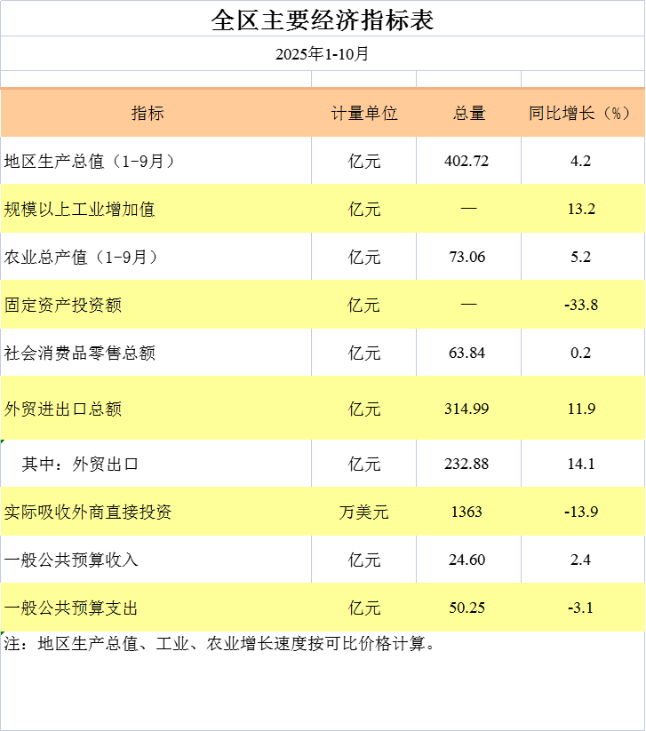1-10月,全區(qū)工業(yè)生產(chǎn)保持較快增長(zhǎng)、投資領(lǐng)域降幅穩(wěn)步收窄,經(jīng)濟(jì)運(yùn)行總體穩(wěn)中有進(jìn)。